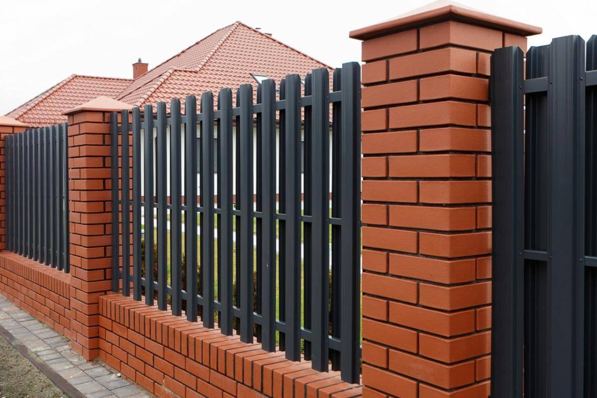 Заборы и ограждения из евроштакетника с кирпичными столбами 6 соток в Истре
